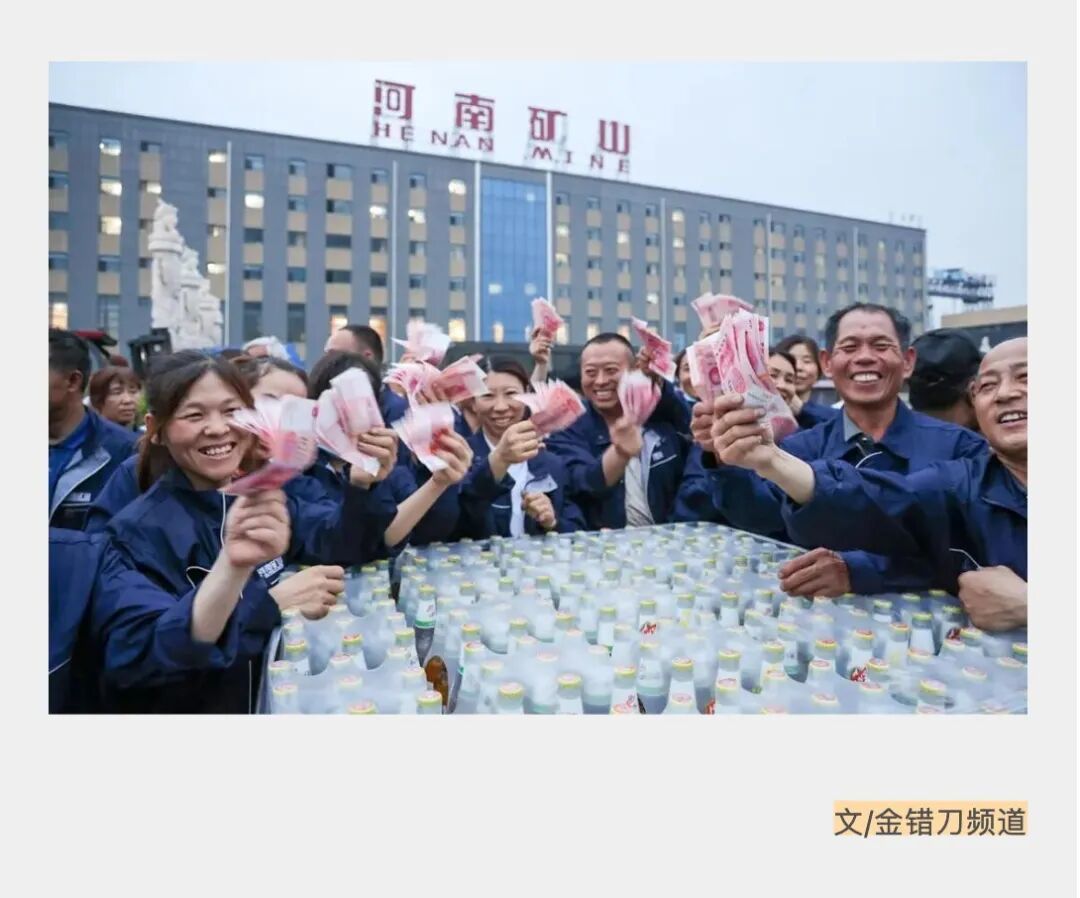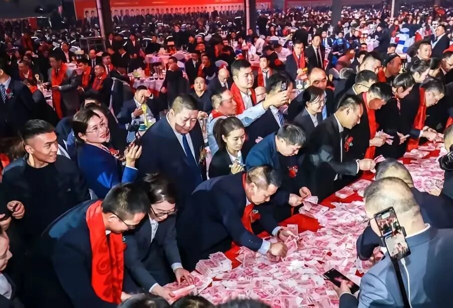 最出圈的是2022年河南矿山年会,现场6100万元现金被垒成小山,销售员工依次上台领取年终奖,最低100万元,最高500万元,这百万元现金员工都得拿麻袋装。