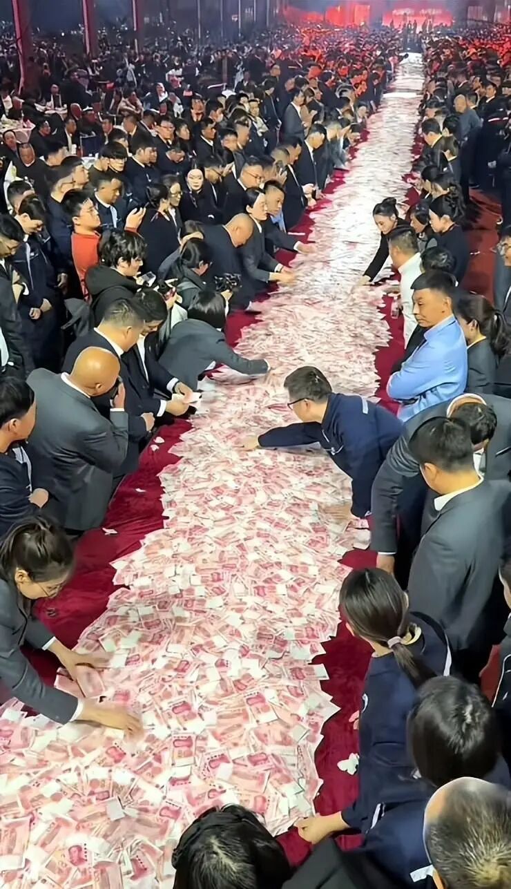崔培军公司的年会,堪称中国最爽年会。几十米长的红绒布长桌一字排开,铺满百元大钞,员工排队数钱,10分钟内数多少拿走多少。有人10分钟数出8万元,手速稍慢的也能带走5万多。